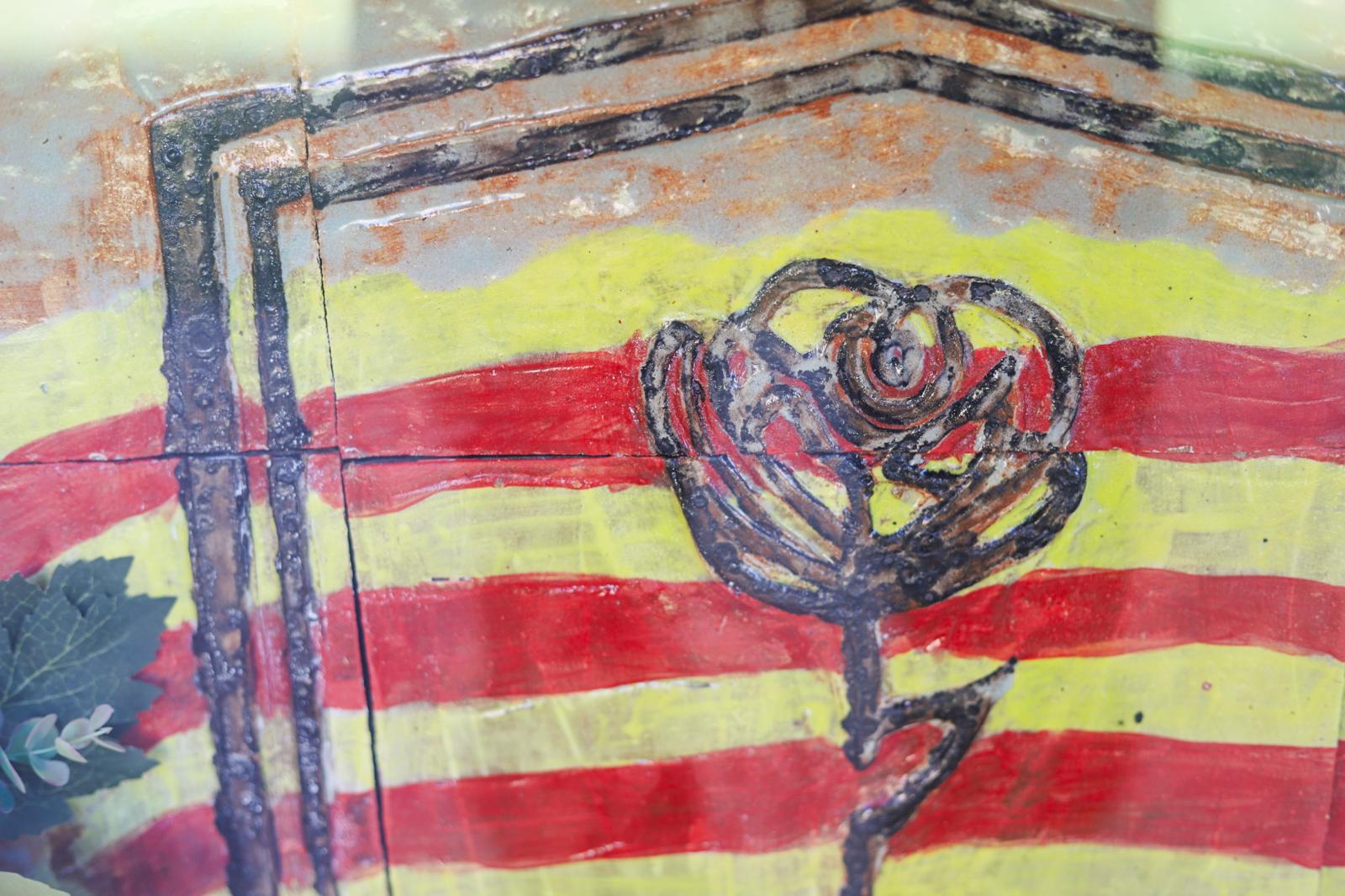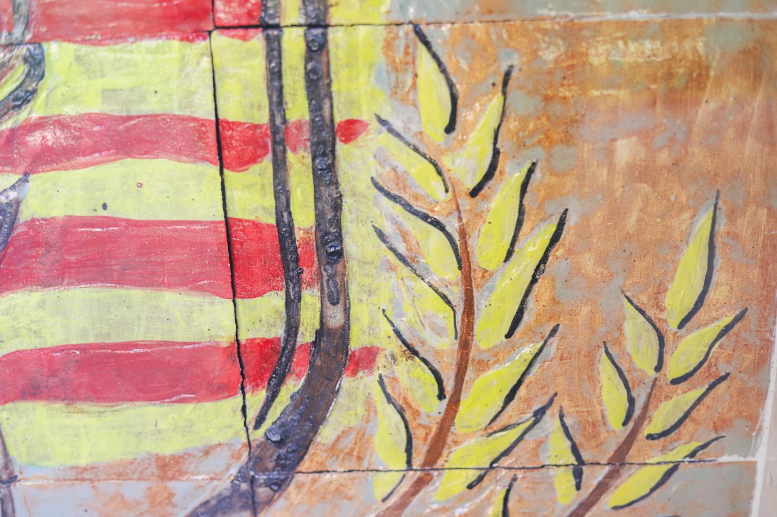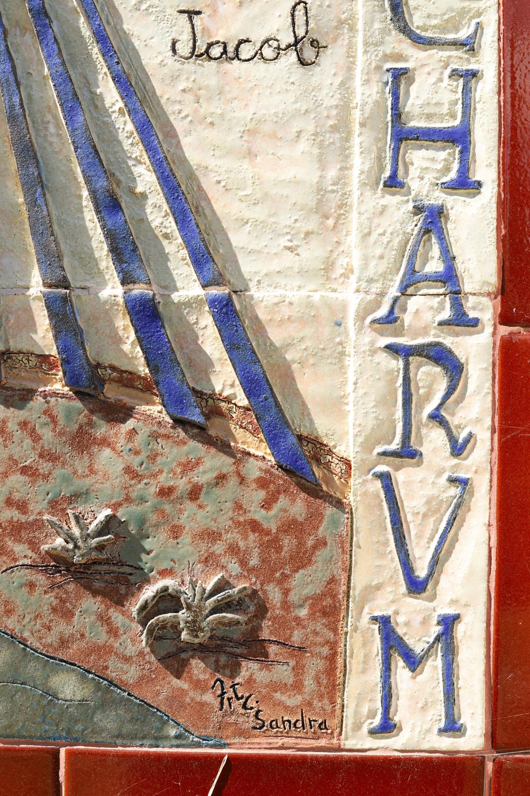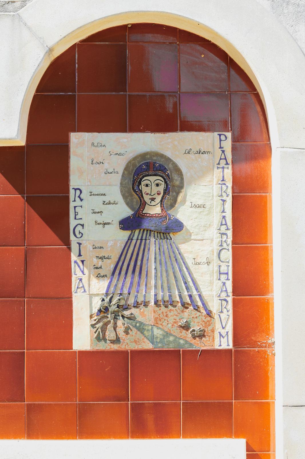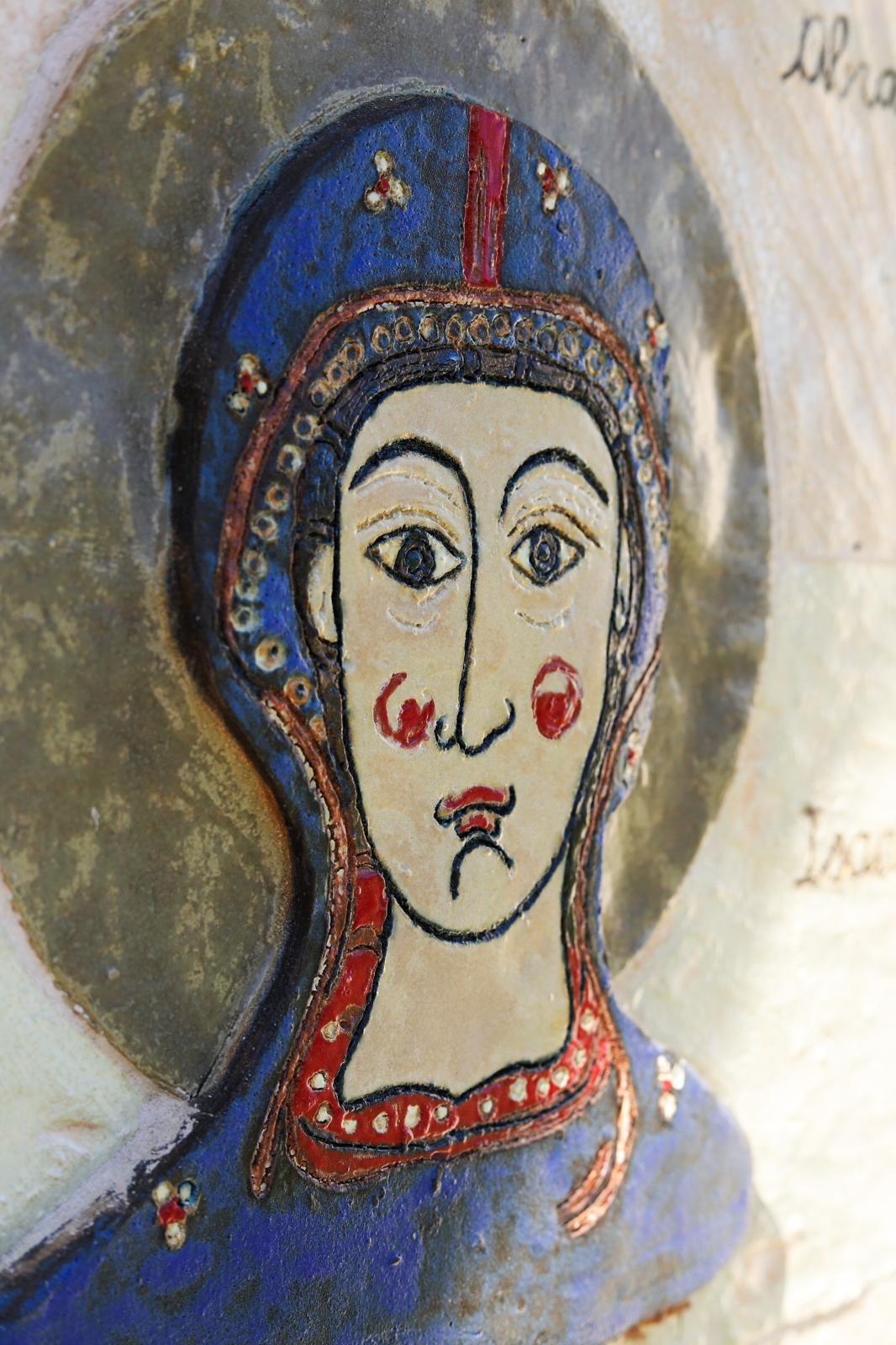 Encargo particular. Se trata de un Mural por el cementerio del Municipio de Villalonga del Camp, formado por 16 baldosas cocidas a alta temperatura 1250º. Inspirado en el arte románico, con la virgen de Santa Maria de Taüll, la cual simboliza las 12 tribus de Israel.