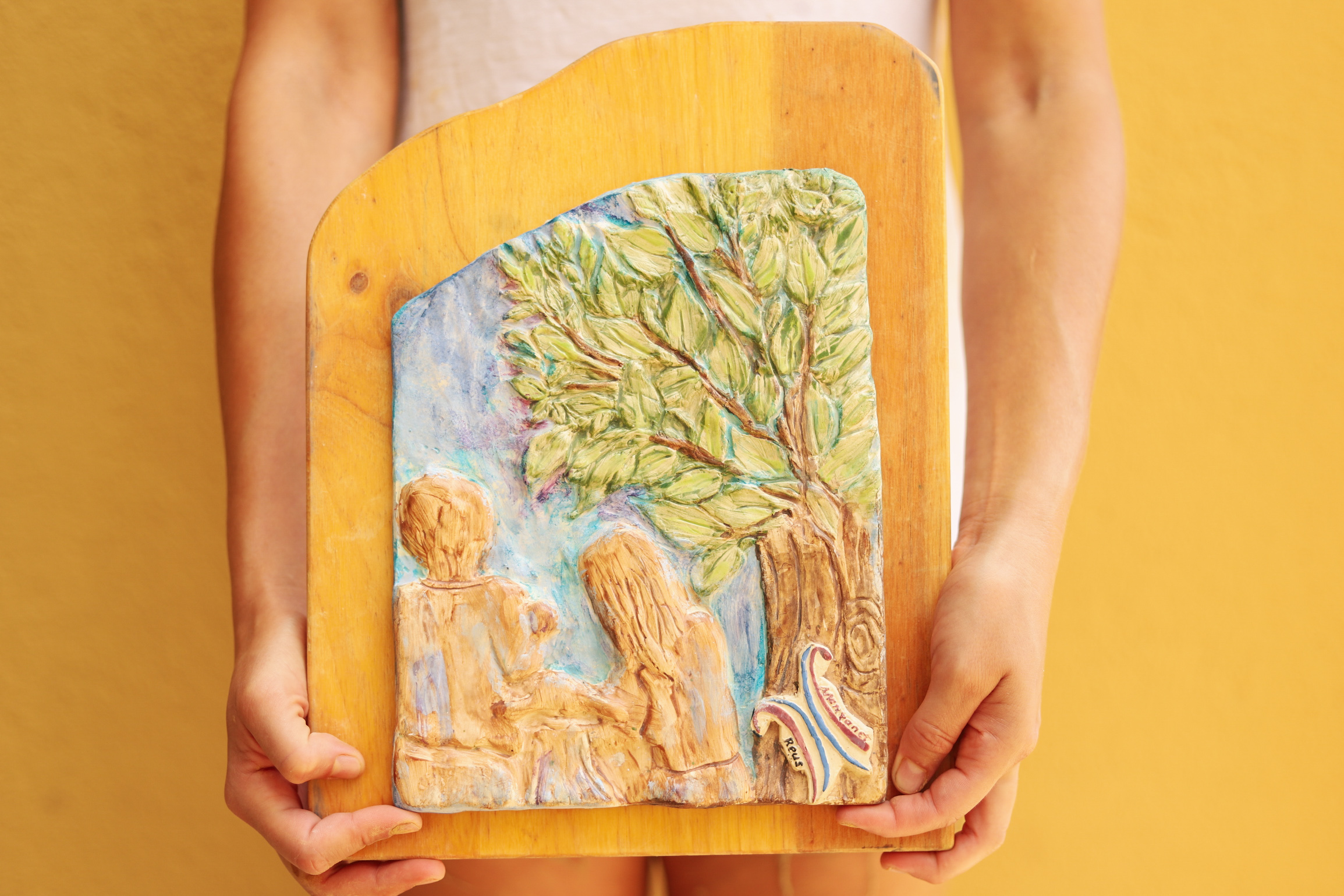 Restauración placa ceramista Neus Segrià. Año 2025.